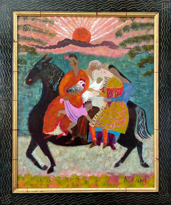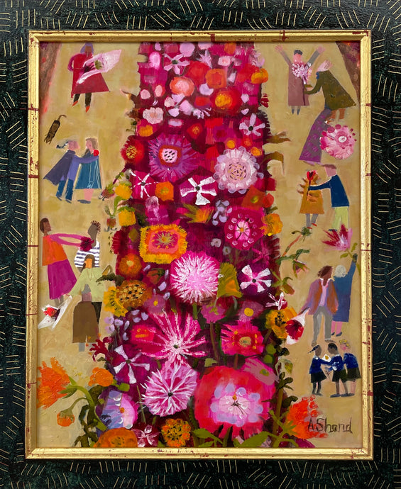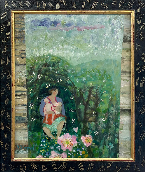Her work is primarily focused on the domestic areas of life drawing on family, landscape and nature for inspiration. She takes inspiration from a wide range of artists including Picasso, Winifred Nicholson, Vuillard, Chagall, Utamaro, Indian miniatures and Russian religious iconography.