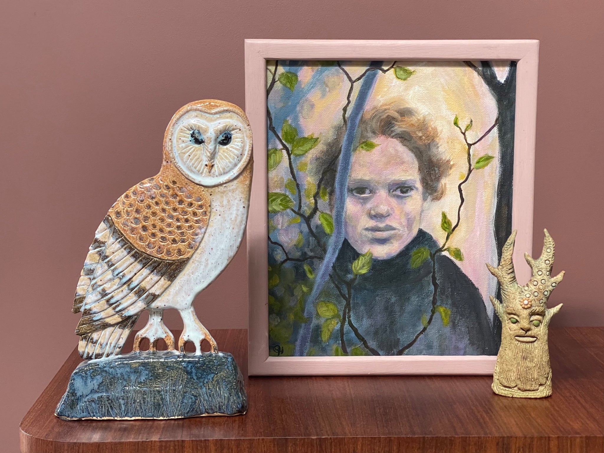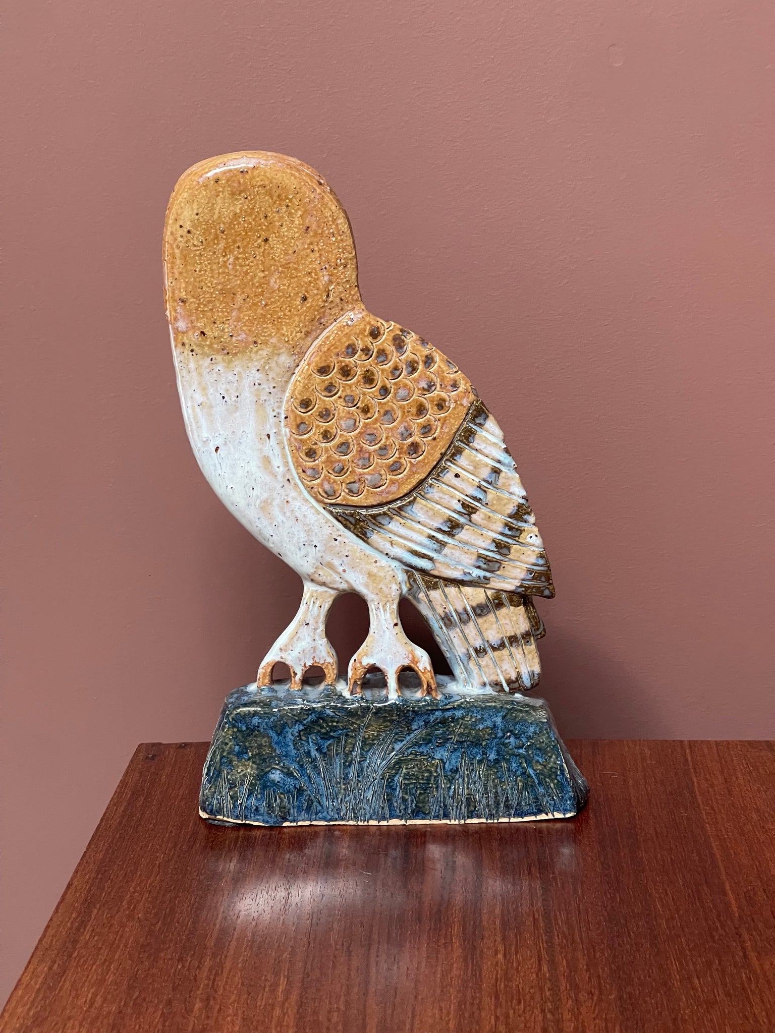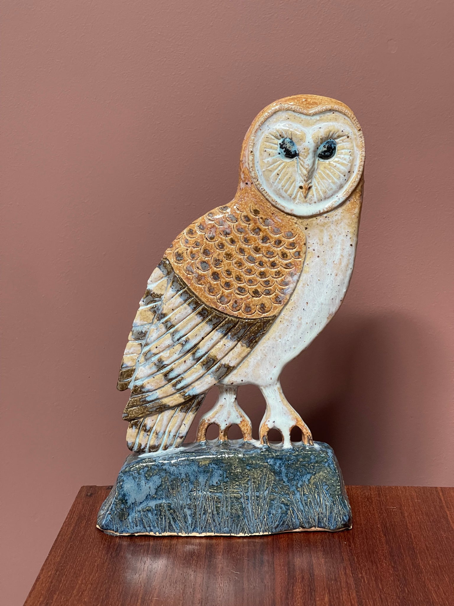 Gritty sculptural clay fired to 1250C with a blue terracolor stone glaze.